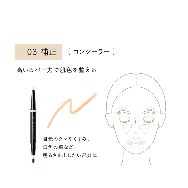 パルミチン酸エチルヘキシル、合成フルオロフロゴパイト、トリイソステアリン酸ポリグリセリル-2、トリ(カプリル酸/カプリン酸)グリセリル、ダイマージリノール酸(フィトステリル/イソステアリル/セチル/ステアリル/ベヘニル)、合成ワックス、シリカ、キャンデリラロウ、カルナウバロウ、セスキイソステアリン酸ソルビタン、レモングラス油、トコフェロール、スクワラン、BG、水、水酸化Al、モモ葉エキス、ローズマリー葉エキス、マイカ、酸化チタン、酸化鉄、黄4