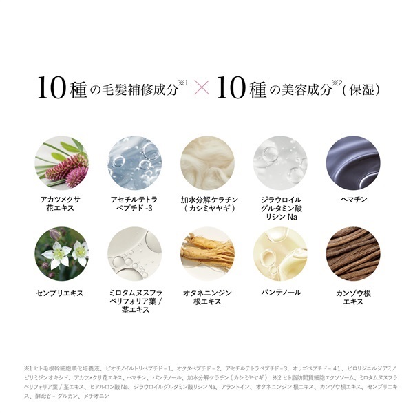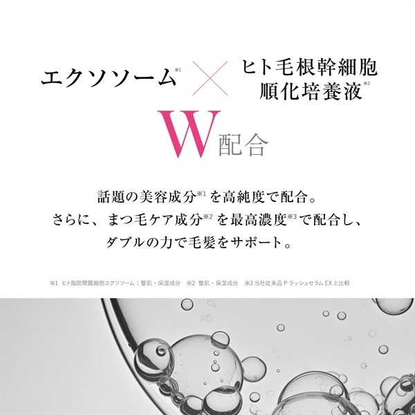 さらに、まつ毛ケア成分*2を最高濃度*3で配合し、ダブルの力で毛髪をサポート。
