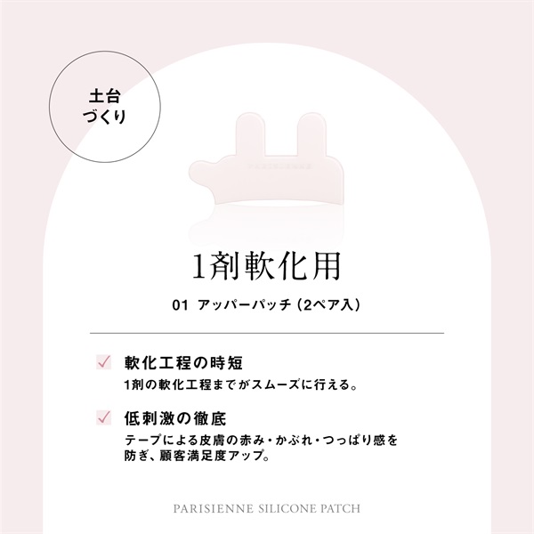 軟化工程を安定させる、土台設計パッチ。 ロッド置き時間をゼロにし、スムーズに軟化工程へ移行。 施術の土台を整え、安定した仕上がりと高い再現性を実現します。