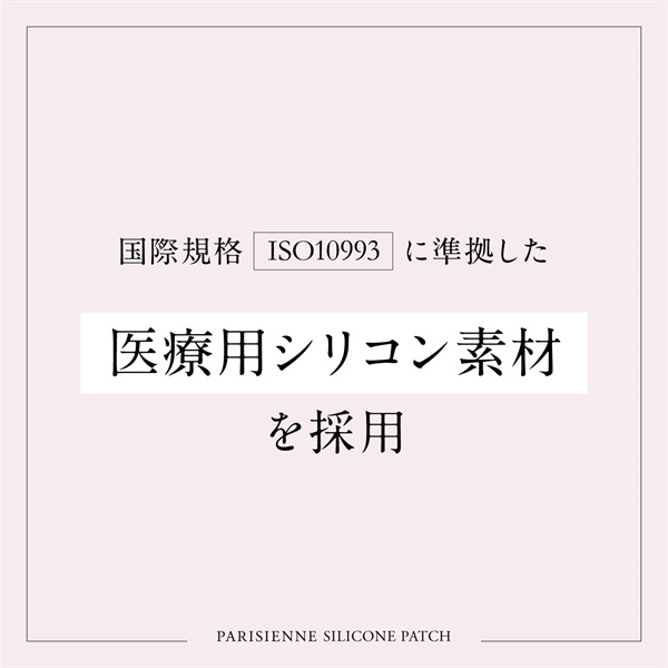 素材:医療用シリコン(ISO10993準拠) 医療機器の生物学的安全性評価に基づいた、肌にやさしい設計