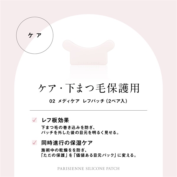 施術中の目元環境を整える、ケア設計パッチ。 テープレスで下まつ毛を保護しながら、施術中の目元ケアを同時に実現。 施術時間を活かし、仕上がり後の目元印象まで整えます。